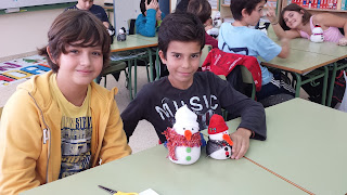Els alumnes de sisè hem fet uns ninots de neu fets amb un mitjó i arrós. Després l'hem decorat amb diferents detalls (botons, imperdibles, teles de colors,..). El resultat ha estat fantàstic. Aquí deixam unes fotografies per veure el resultat. Esperam que vos agradi.